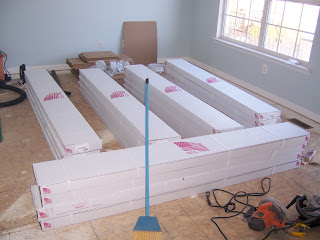 All the flooring boxes chilling in our family room so they can acclimate. We since had to move those so we could do some leveling of the floor in spots.
