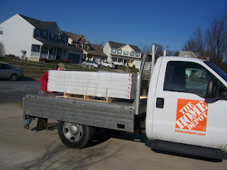 It took about a week for the flooring to arrive at the store and on Christmas Eve the H and I drove to the store and rented one of their trucks to bring it home. They loaded on the truck with the pallet loader but we had to unload each individual box one at time. Keep in mind each box weighs 80 lbs and we had 24 of them. That was a great way to spend Christmas Eve haha;)
