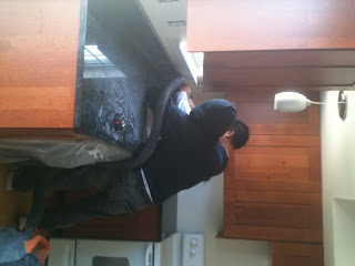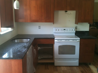 The post title says it all! Our kitchen is now about 90% complete. Just plumbing hookup and exhaust fan and adding the toe kick and deco strips. Sorry about the Iphone pics being a little blurry.